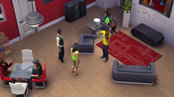 Интересна анимация будет во время групповых взаимодействий. Симы теперь, смогут общаться «кучками» по 5 человек. Голова и верхняя часть корпуса будет поворачиваться в сторону говорящего. Тоже будет происходить, если кто-нибудь заходит в дверь.