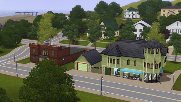 Недалеко друг от друга расположены театр под названием «Буратино» и салон красоты «Дрю». В последнем вы можете осуществить свою мечту в виде татуировки. Для любителей себя баловать в Симс 3 в городе Твинбруке есть еще один салон красоты «Шарм».