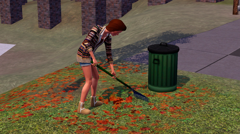 Листопады начинаются не сразу. Для начала листва должна окончательно пожелтеть-покраснеть. И тогда вам придется регулярно собирать листья в кучи. А еще желательно, чтобы их ветер не разносил. Если вам надоест собирать листву, это может сделать за вашего персонажа и домработница.
