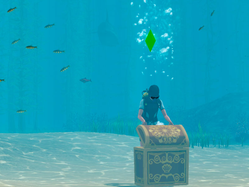 Моя самая любимая новая игровая возможность - это, бесспорно, погружение с аквалангом! Теперь можно не только плавать по поверхности океана, но и нырять в глубину! Дополнение The Sims 3 Райские острова - это мир с уникальными местами для погружений. Персонажи, обладающие навыком ныряния, могут посещать и исследовать подводный мир, где очень многое подлежит исследованию. В каждом месте для погружения полно красивых морских обитателей, от разнообразных кораллов и ламинарии, растущих на океанском дне, до рыб, которых можно поймать! Но остерегайтесь акул! Я слышала, они кусаются и бывают очень злыми.