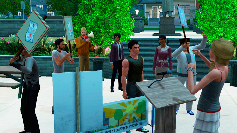 Как только ваш персонаж решил встать на тропу бунтарства, у него появляется возможность разглагольствовать и организовывать акции протеста. На втором уровне влияния вы найдете в багаже у сима мегафон – это незаменимый предмет для бунтарей. Еще у вас появится все для стрит-арта. Разрисовывайте здания города и повышайте уровень влияния.